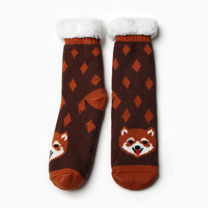 Носки женские с мехом, цвет коричневый/собака, размер 36-40
