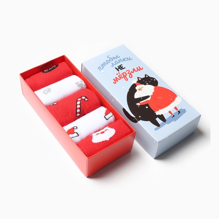 Носки женские новогодние KAFTAN «Чтобы лапки не мерзли» размер 36-39 (23-25 см), набор 5 пар