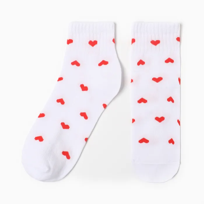 Носки женские TEKKO «Сердечки», белые, красные, размер 23