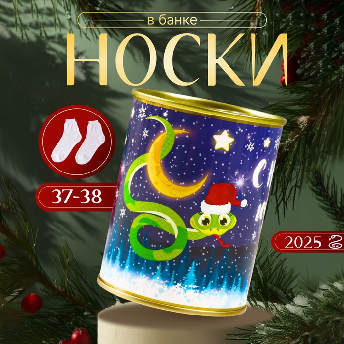 Подарочные носки в банке «С Новым годом!», (внутри носки женские, цвет белый)