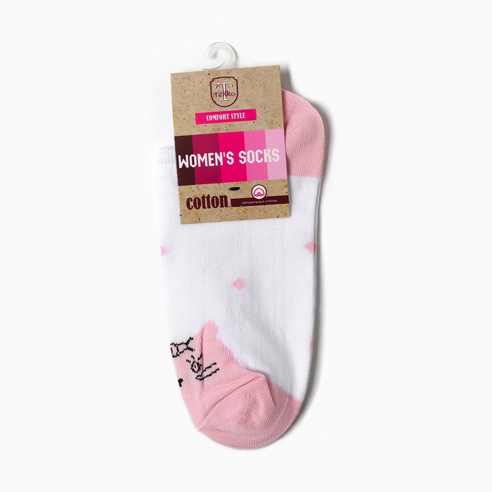 Носки женские укороченные "Котик", цвет белый/розовый, р-р 23-25 — Характеристики