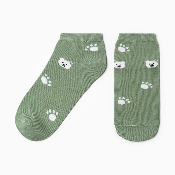 Носки женские укороченные "Медвежата", цвет белый/оливковый, р-р 23-25