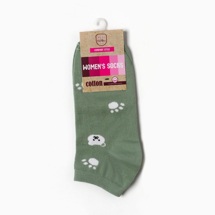 Носки женские укороченные "Медвежата", цвет белый/оливковый, р-р 23-25 — Характеристики