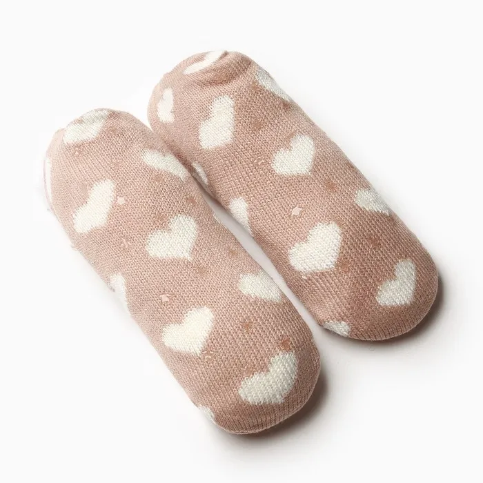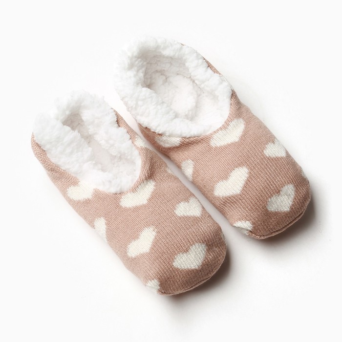 Носки женские укороченные нескользящие с мехом, коричневые, сердечки, размер 36-40