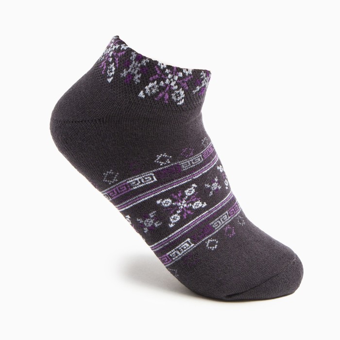 Носки женские укороченные махровые «Снежинки» цвет тёмно-серый, размер 23-25
