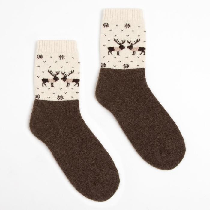 Носки женские из монгольской шерсти, цвет шоколад/олени, размер 23 (34-36)