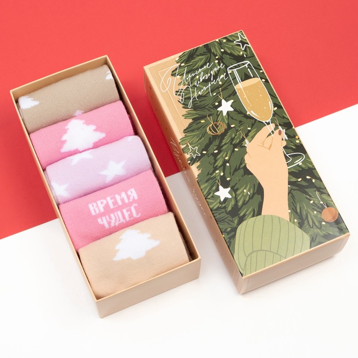 Носки женские новогодние Winter размер 36-39 (23-25 см), набор 5 пар