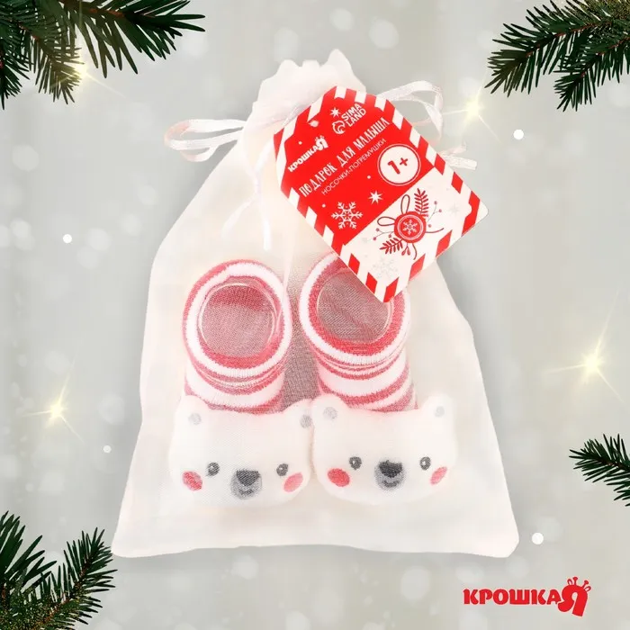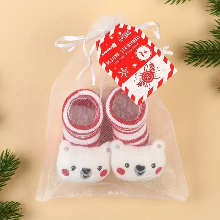 Носочки - погремушки «Мишка», 2 шт., Крошка Я — Характеристики