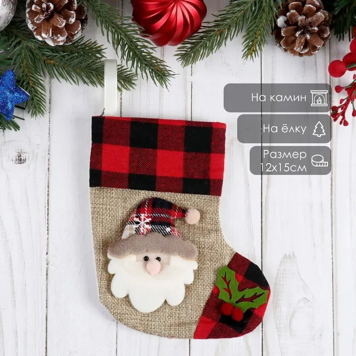 Носок для подарков «Дед Мороз» 12×15.5 см, коричневый — Характеристики