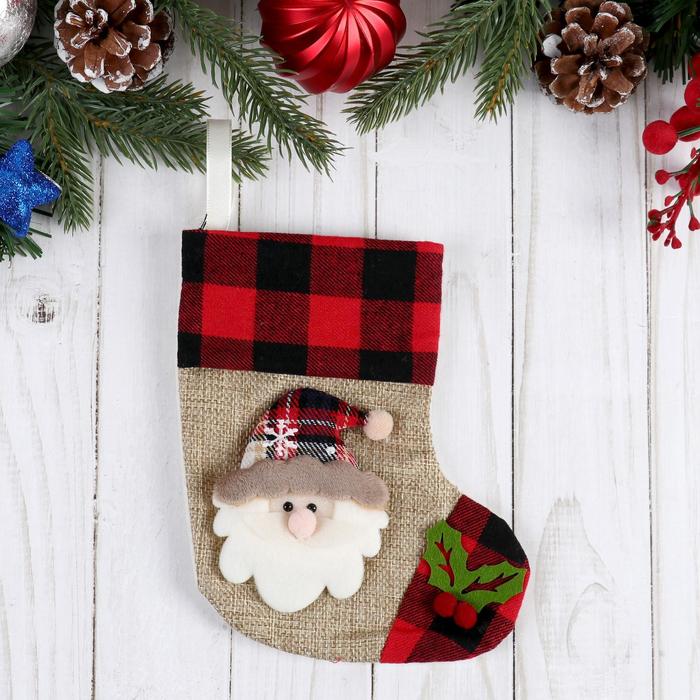 Носок для подарков «Дед Мороз с ёлочкой», 19×26 см, красно-зелёный