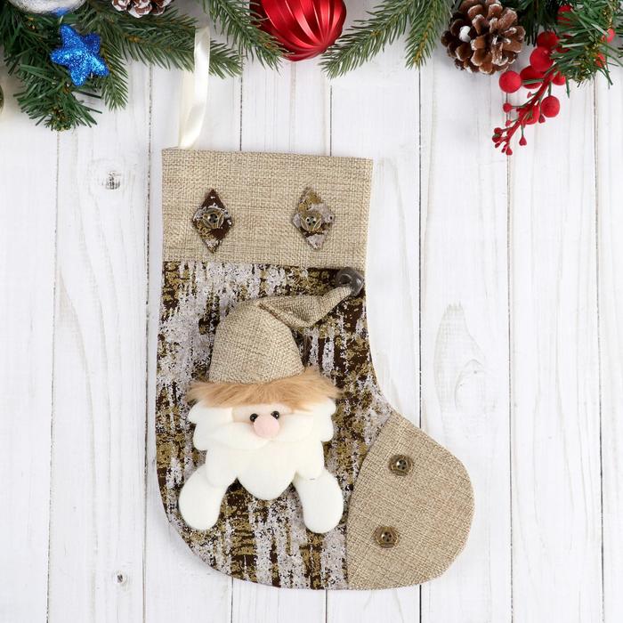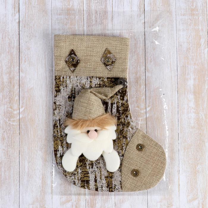 Носок для подарков «Дед Мороз и берёзка» 18×24 см, коричневый
