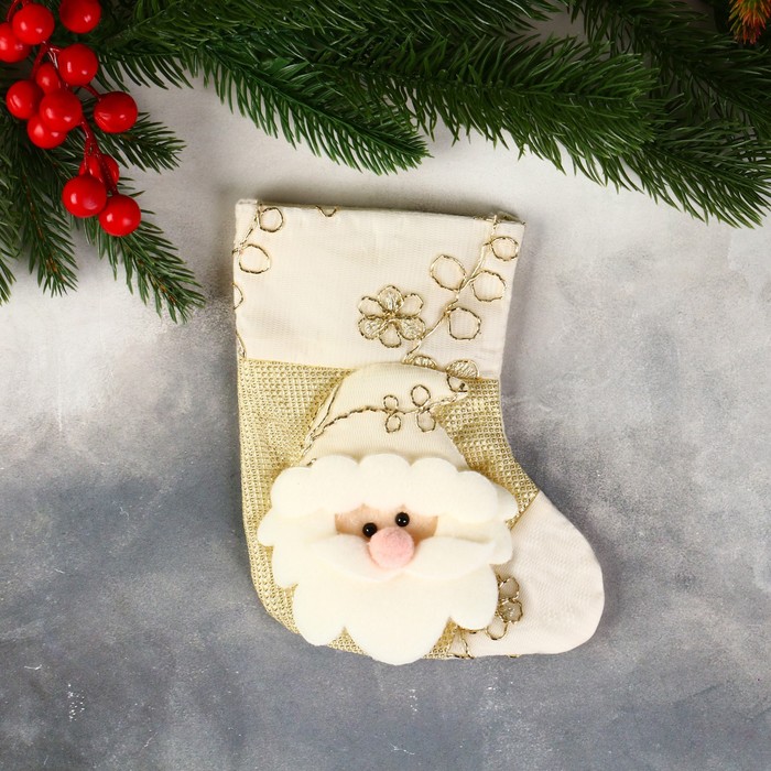 Носок для подарков «Дед Мороз и цветочный орнамент» 11×16 см, золотистый