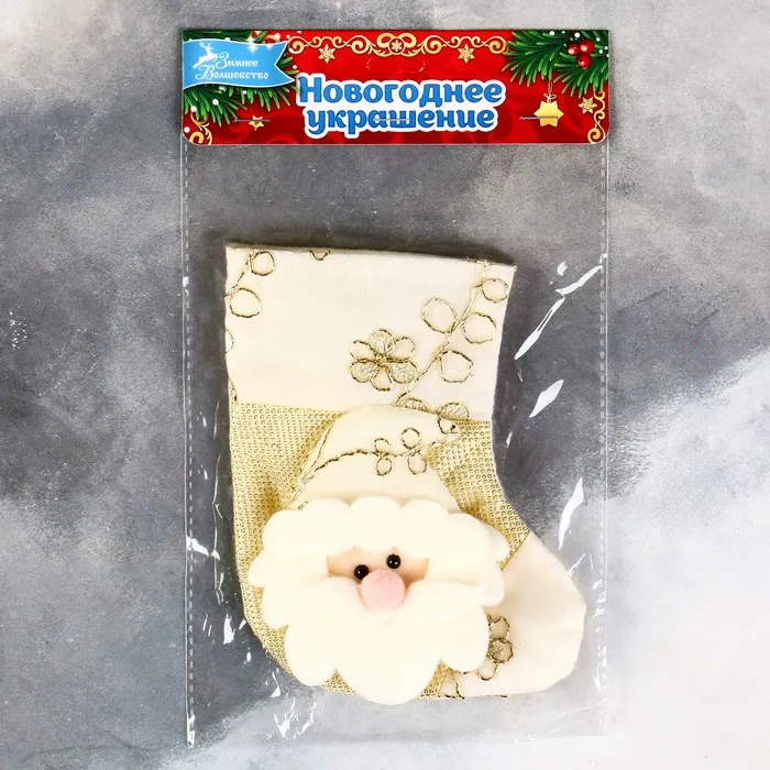 Носок для подарков «Дед Мороз и цветочный орнамент» 11×16 см, золотистый — Характеристики