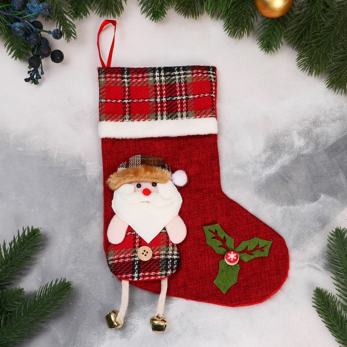 Носок для подарков «Дед Мороз с длинными ножками», 19×25 см, красный — Характеристики