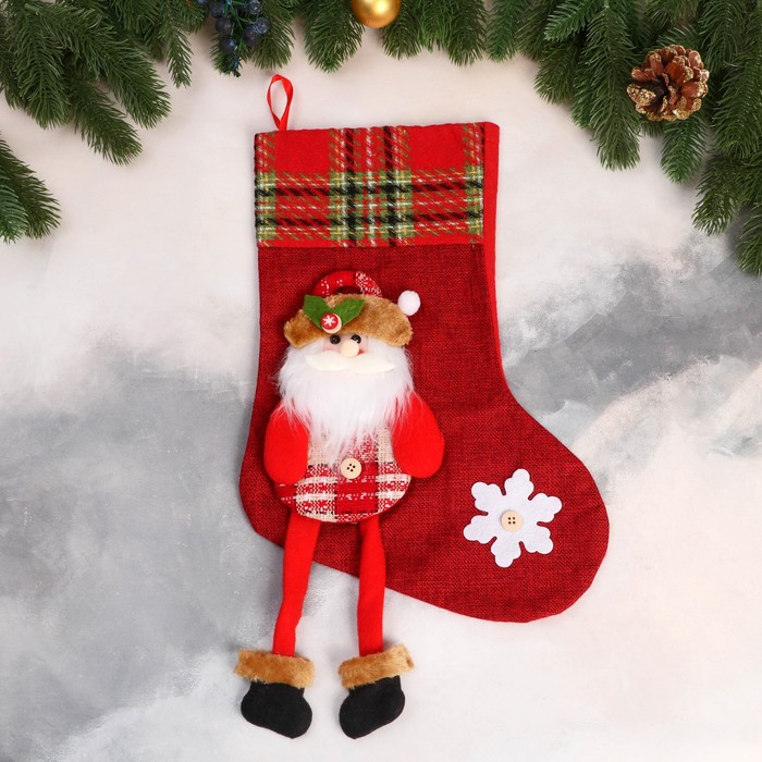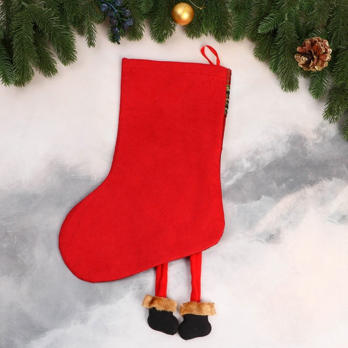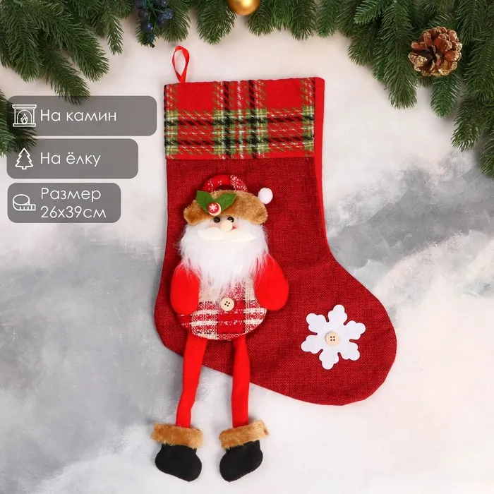 Носок для подарков «Дед Мороз с длинными ножками и снежинкой», 26×39 см, красный — Характеристики