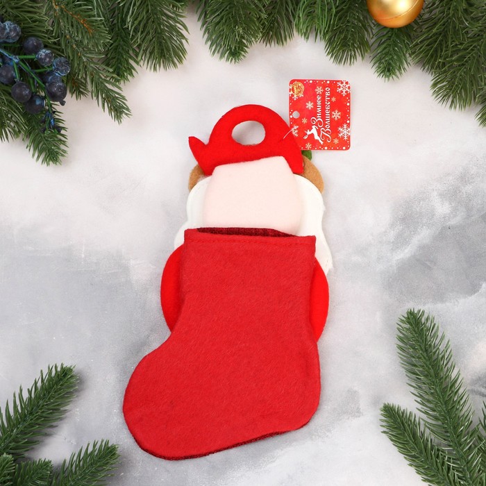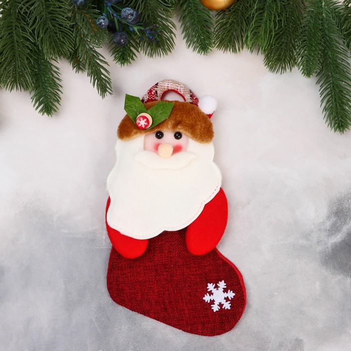 Носок для подарков «Дед Мороз с ягодкой» 11×26 см, красный