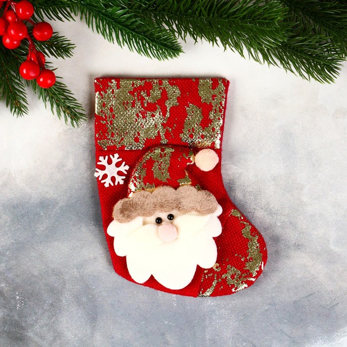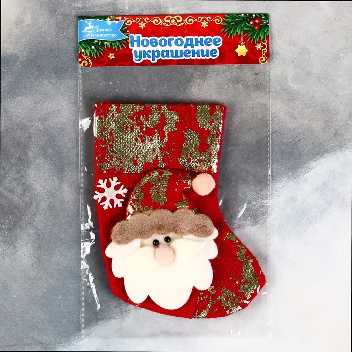 Носок для подарков «Дед Мороз с поталью» 11×16 см, красный — Характеристики