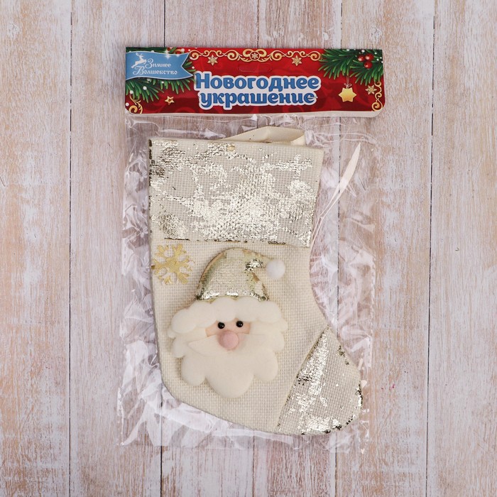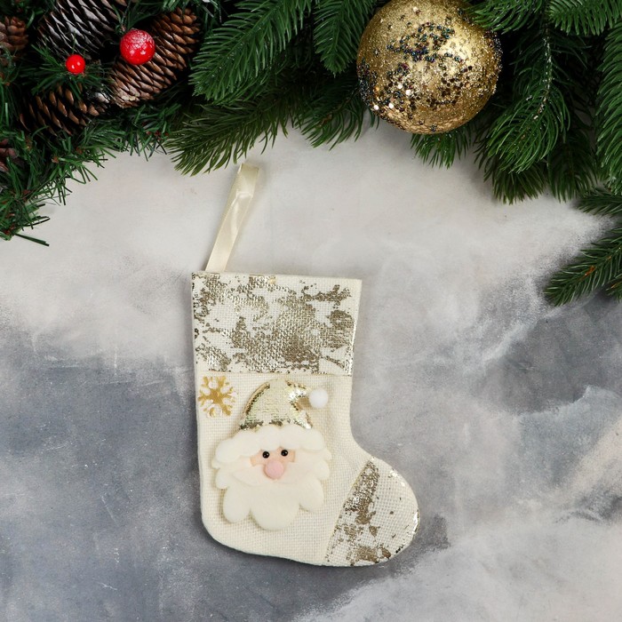 Носок для подарков «Дед Мороз с поталью» 11×16 см, золотистый — Характеристики