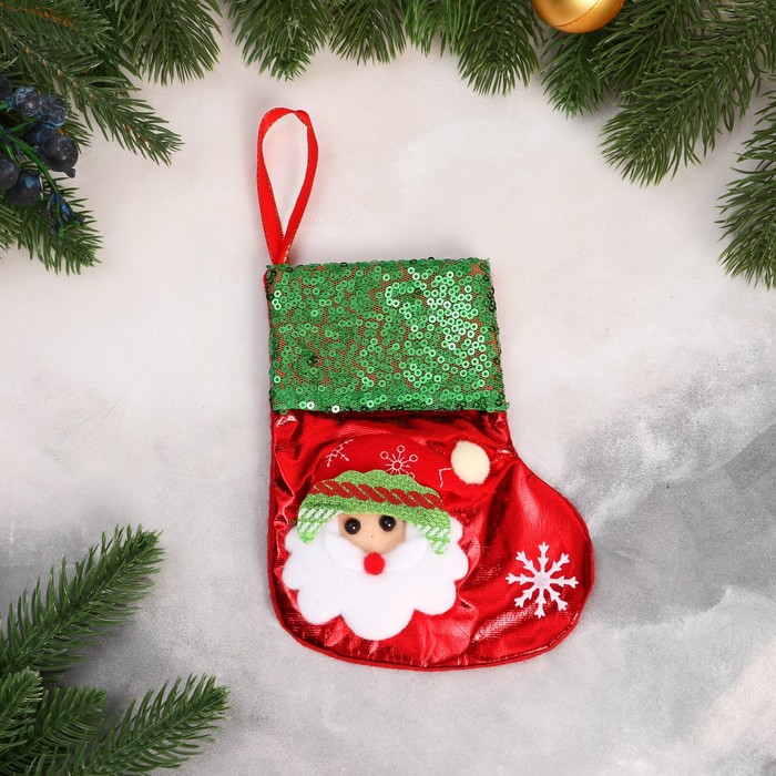 Носок для подарков «Дед Мороз со снежинками», 18×25 см, красный — Характеристики