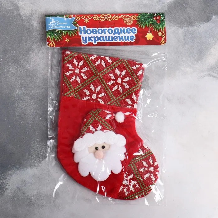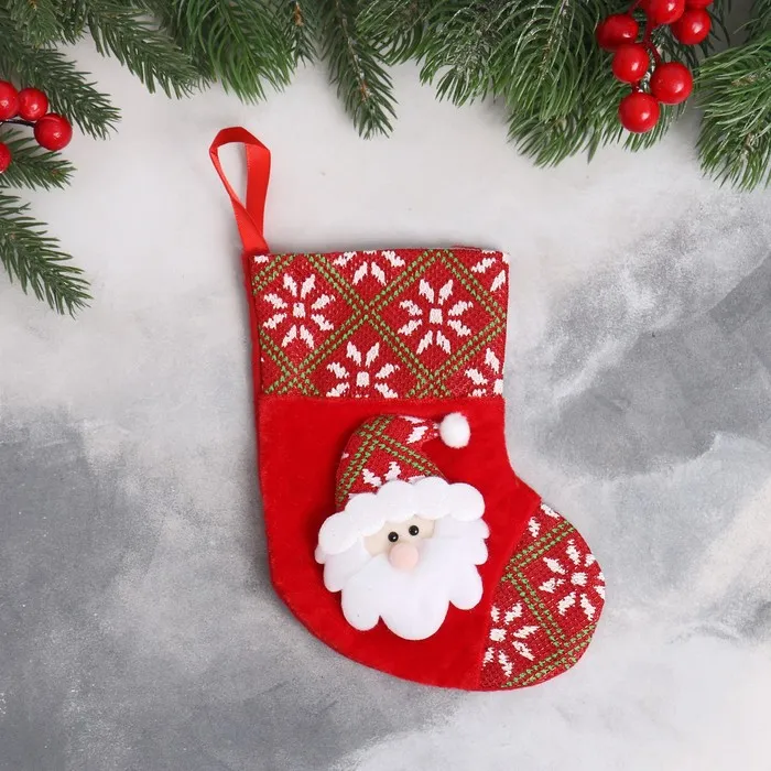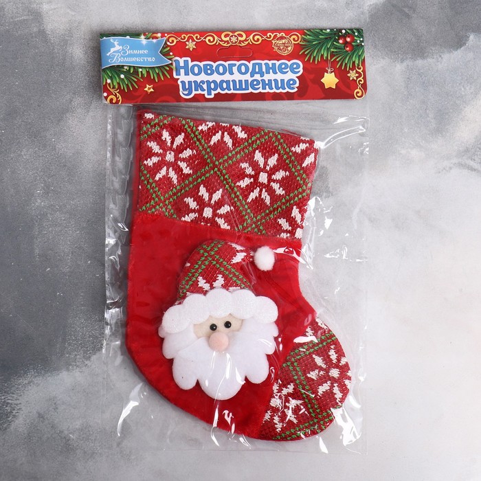 Носок для подарков «Дед Мороз в колпаке», 13×17 см, красный — Характеристики