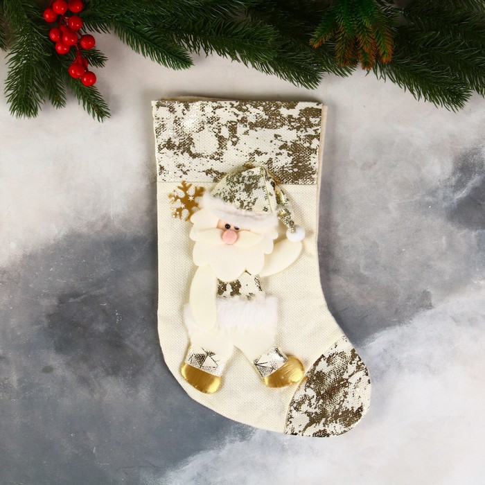 Носок для подарков «Дед Мороз в колпаке с поталью», 20×33 см, золотистый