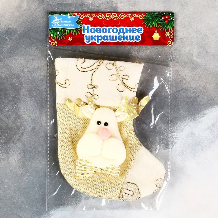Носок для подарков «Олень и цветочный орнамент» 11×16 см, золотистый — Характеристики
