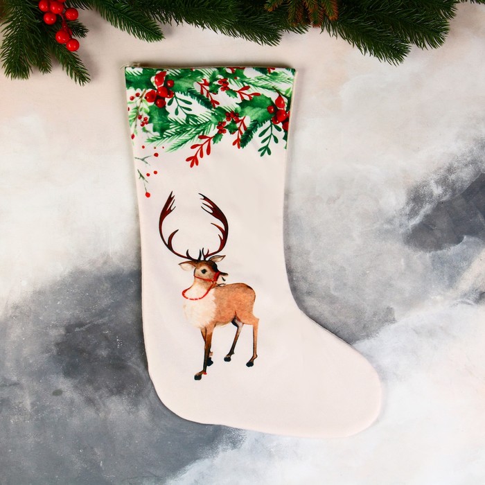 Носок для подарков «Олень в лесу» 26×40 см, белый