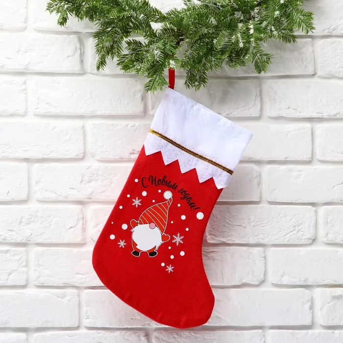 Новогодний мешок - носок для подарков - неотъемлемый аксессуар вашего дома в новогодние праздники, который подарит вам сказочную атмосферу тепла и уюта. Новогодние носки выступят отличным дополнением для вашего новогоднего декора, а также их можно использовать в качестве новогоднего подарка для родных и близких.