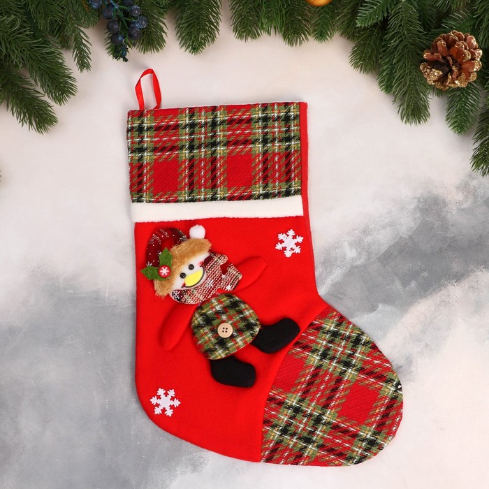 Носок для подарков «Снеговик» 36×26 см, красно - зелёный — Характеристики