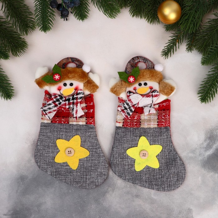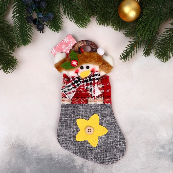 Носок для подарков «Снеговик и звёздочка с пуговкой» 12×24 см, серый