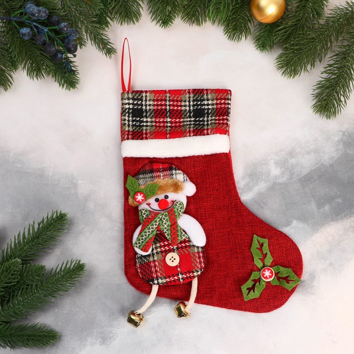 Носок для подарков «Снеговик с длинными ножками» 19×25 см, красный — Характеристики