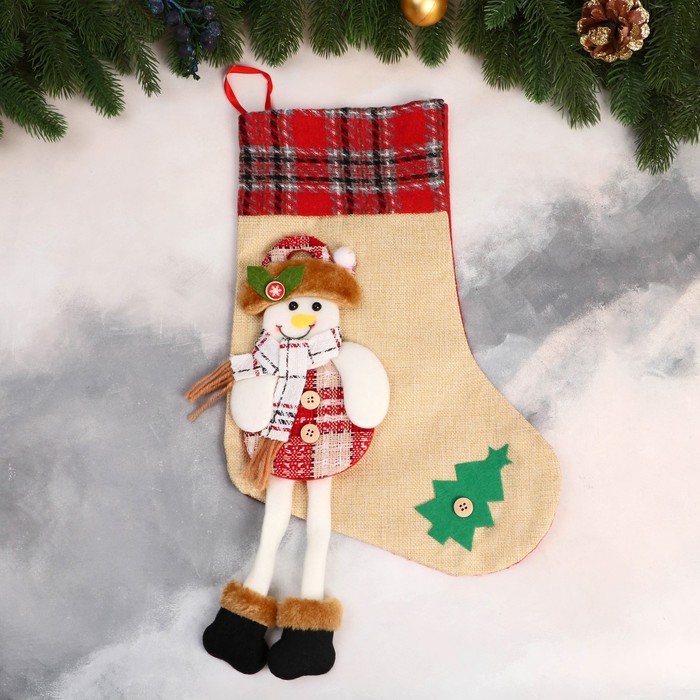 Носок для подарков «Снеговик с длинными ножками и ёлочкой» 26×39 см, бежевый