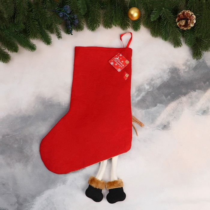 Носок для подарков «Дед Мороз с ёлочкой», 19×26 см, красно-зелёный