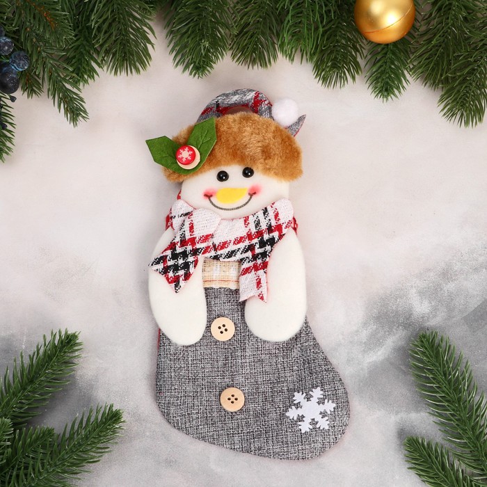 Носок для подарков «Снеговик с ягодкой» 11×26 см, серый — Характеристики