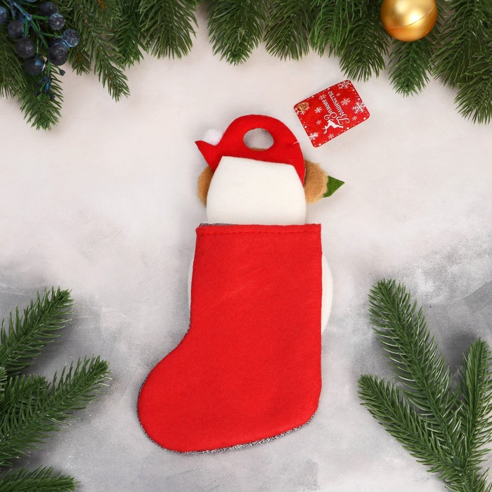 Подвеска на ёлку «Носок - белая ёлочка», мягкая, 8×6 см, красный