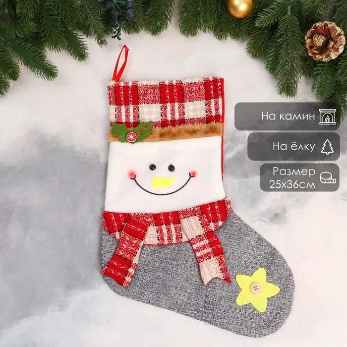 Носок для подарков «Снеговик с румяными щечками» 36×25 см, серый — Характеристики