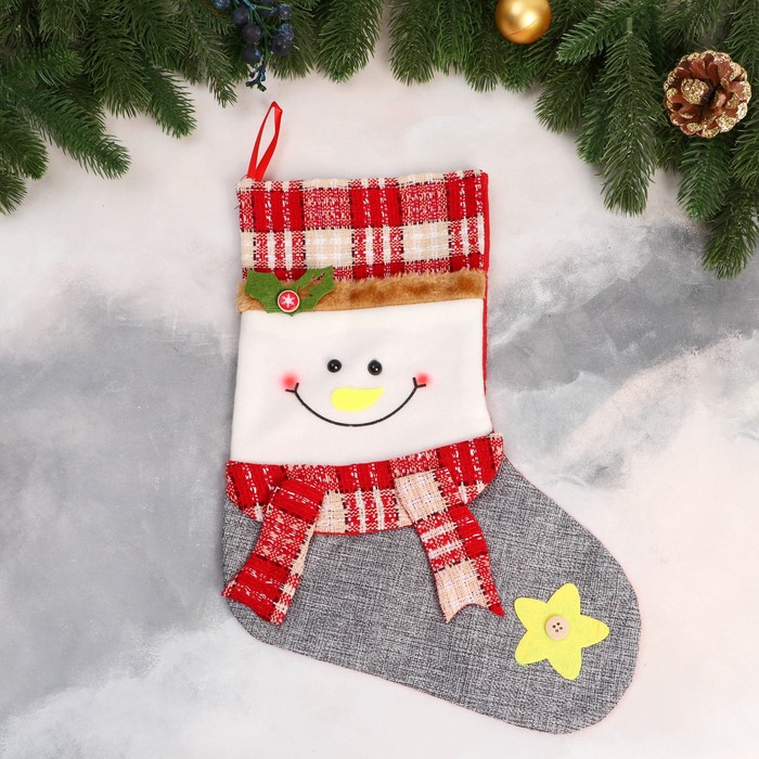 Носок для подарков «Снеговик с румяными щечками» 36×25 см, серый