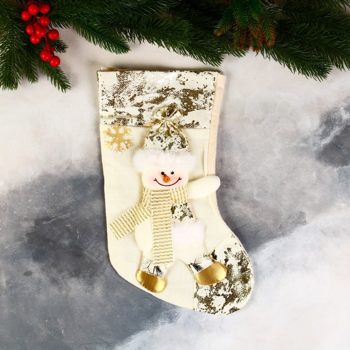 Носок для подарков «Снеговик в шарфике с поталью» 20×33 см, золотистый — Характеристики