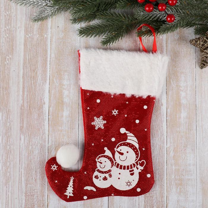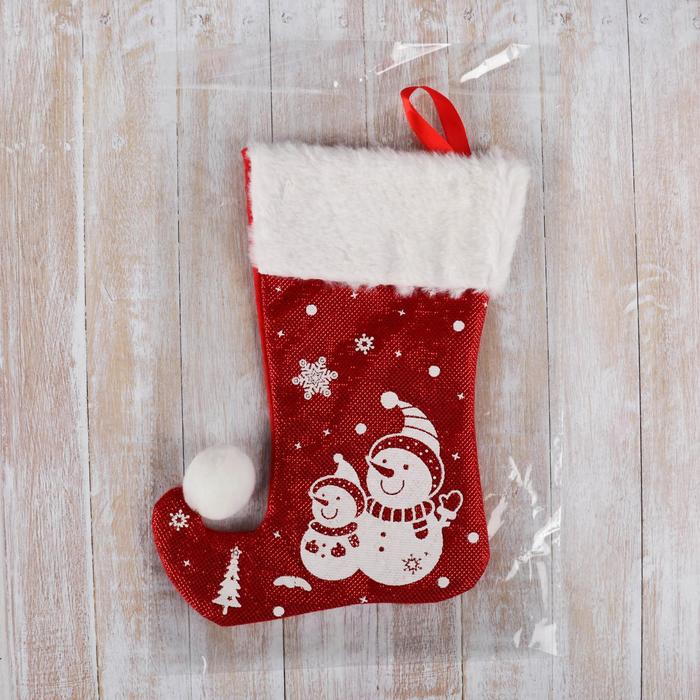 Носок для подарков «Волшебство. Снеговики», 18×25 см, красный — Характеристики