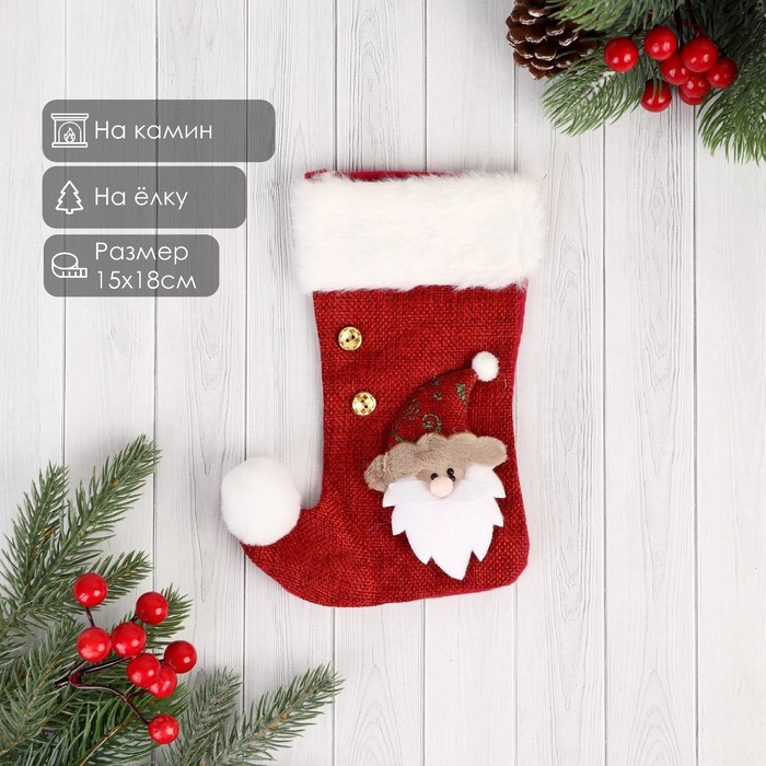 Носок для подарков «Помпошка» Дед Мороз, 15×18 см, МИКС