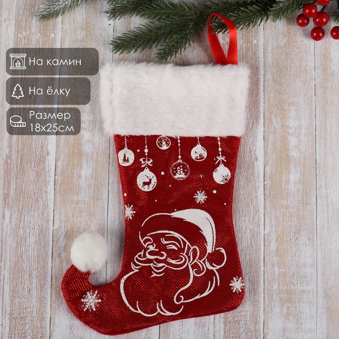 Носок для подарков «Волшебство. Дед Мороз», 18×25 см, красный
