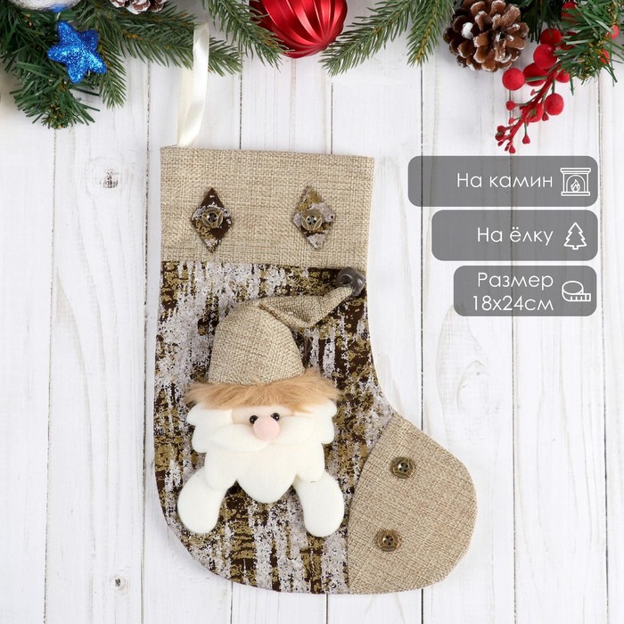 Носок для подарков «Дед Мороз и берёзка» 18×24 см, коричневый