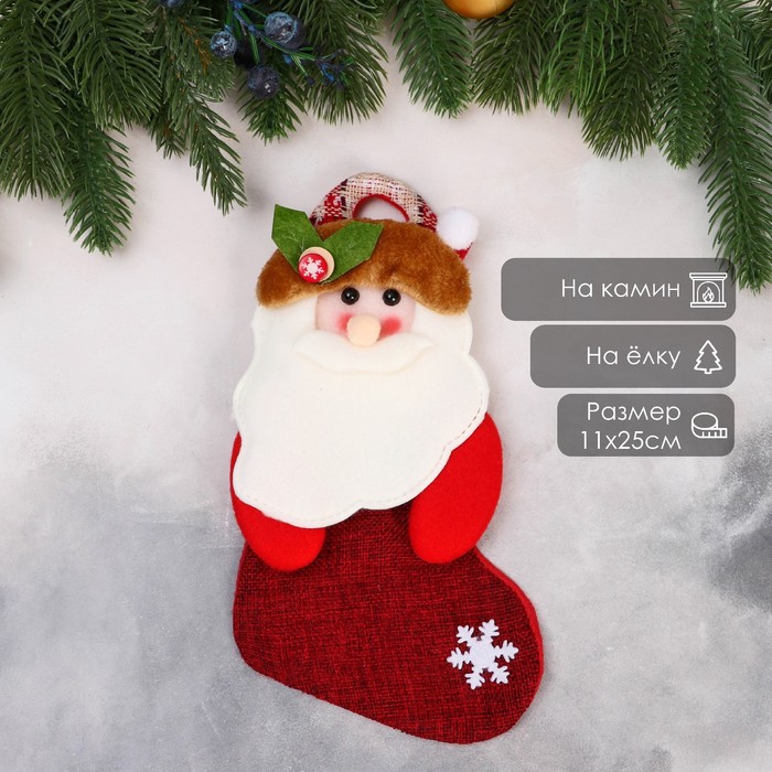 Носок для подарков «Дед Мороз с ёлочкой», 19×26 см, красно-зелёный
