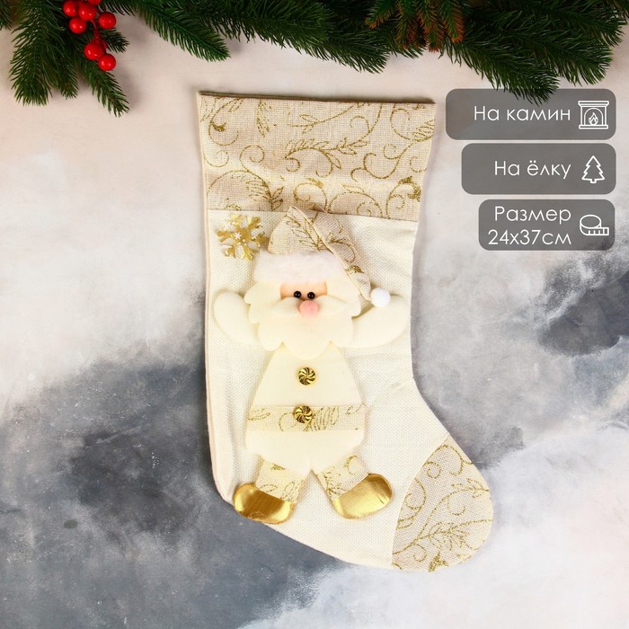 Носок для подарков «Дед Мороз в костюме» 24×37 см, золотистый