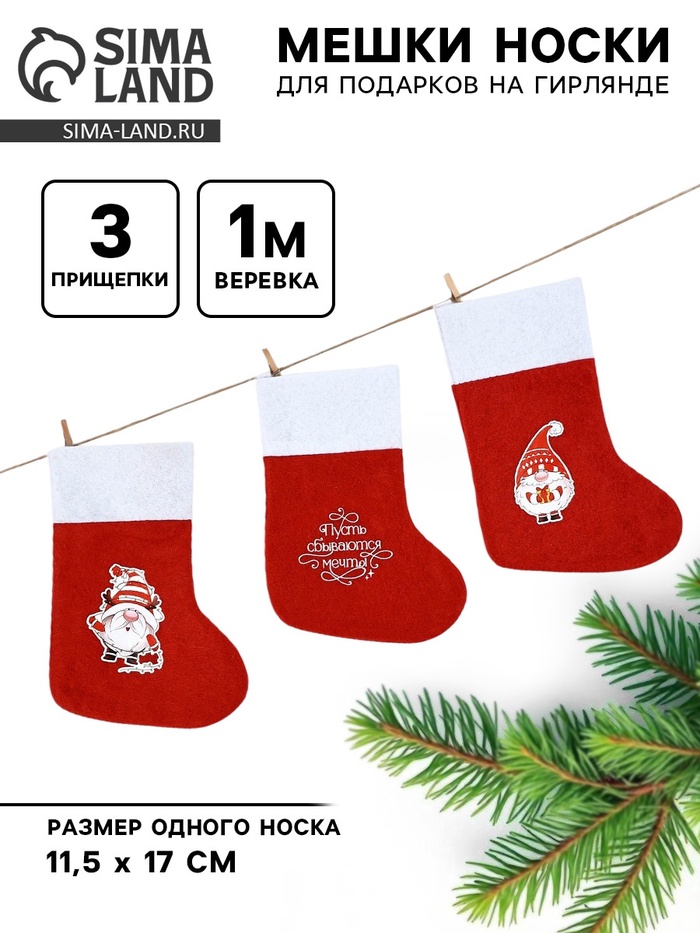 Носок - мешок для подарков с прищепками «Новогодние мечты», набор 3 шт. — Характеристики