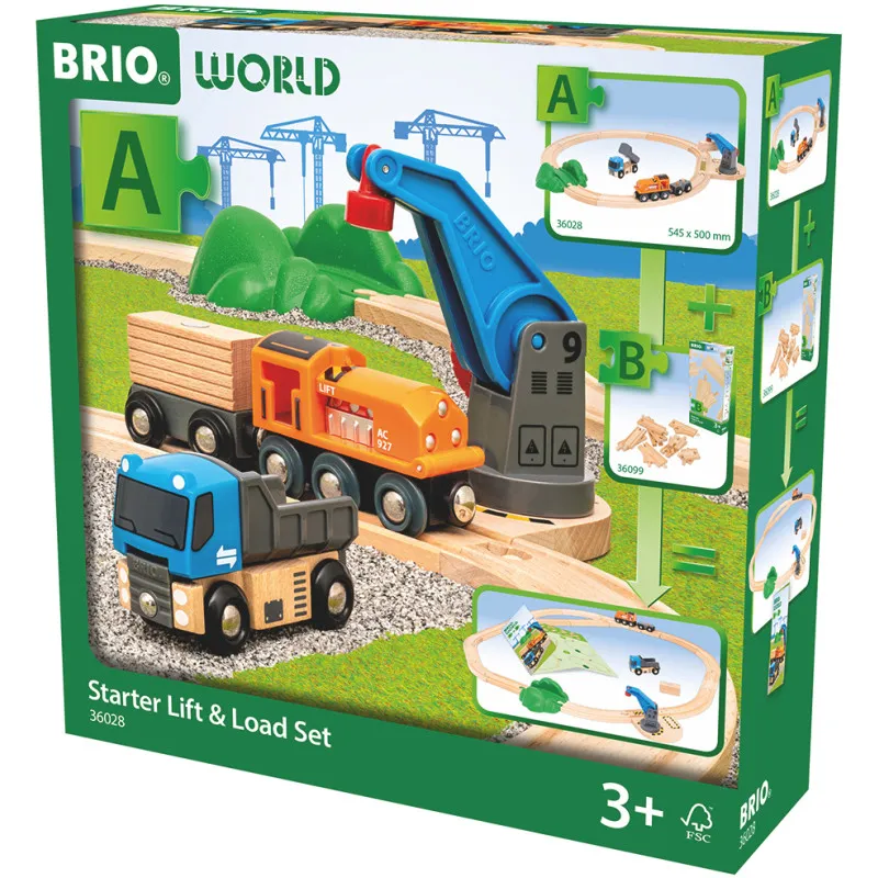 Начните свое первое приключение в мире Brio с помощью стартового набора 36038 "Подъем и загрузка". Этот набор содержит 14 деталей и познакомит вас с классическими играми Brio, где груз загружается на поезд или грузовик с помощью крана.