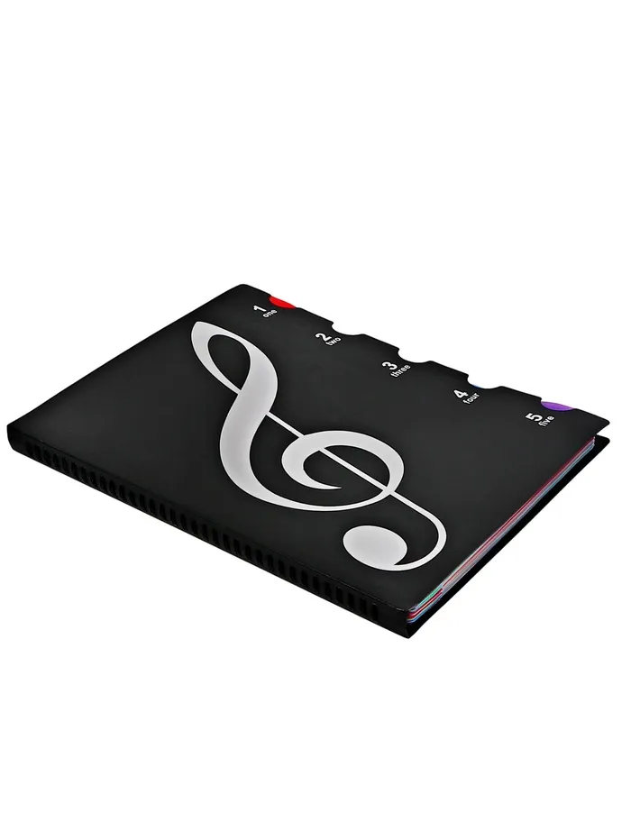 Эта чёрная папка для нот станет вашим надёжным компаньоном на всех музыкальных репетициях и концертах. Оцените её вместительность и функциональность — мультитул для организации 30 файлов и 60 листов. Она является неотъемлемым элементом любого музыканта, облегчая управление партитурами и нотными записями.
