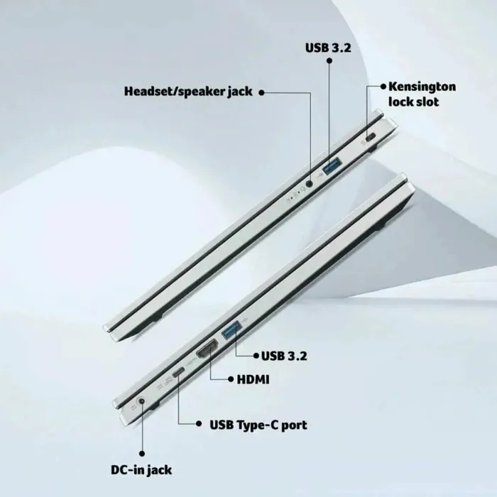 Серебристый корпус придает Acer Extensa 15 современный и элегантный внешний вид, который идеально подойдет как для работы в офисе, так и для использования дома или в учебных заведениях. Его тонкий и легкий дизайн делает устройство удобным для переноски, а также позволяет сэкономить место на столе.