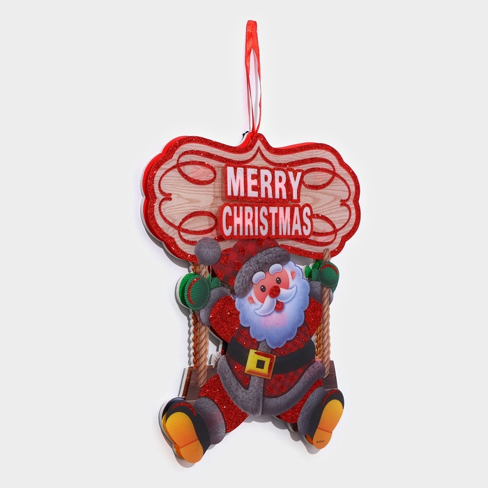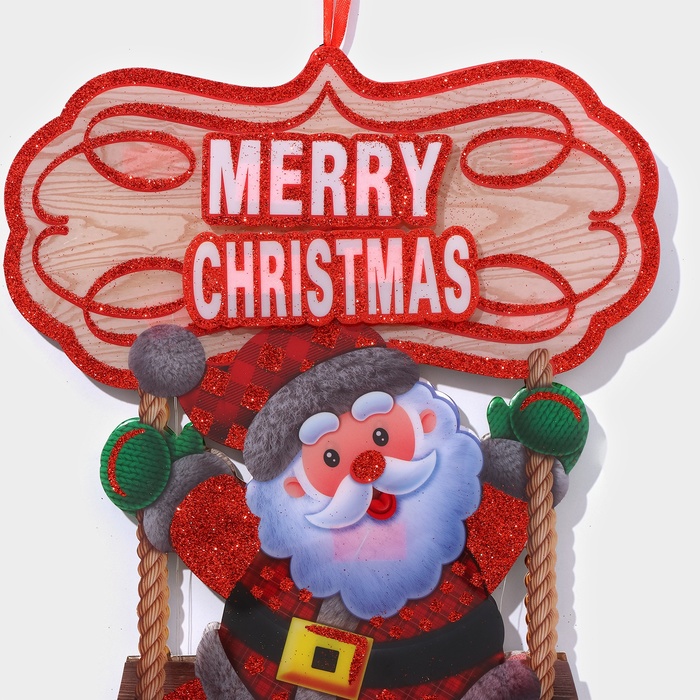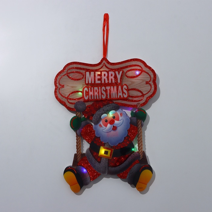 Новогоднее светящиеся украшение настенное «Дед мороз на качелях», подвеска, 36х26,5 см — Характеристики
