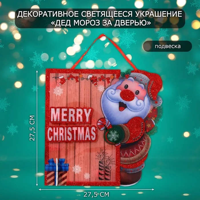 Новогоднее светящиеся украшение настенное «Дед мороз за дверью», подвеска, 27,5х27,5 см — Характеристики